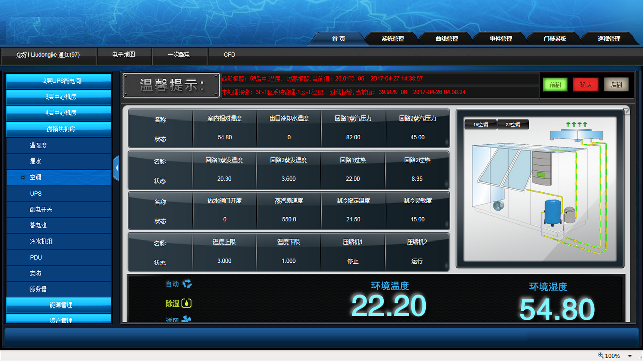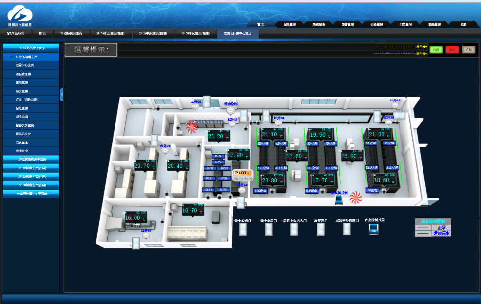 机房环境监控系统是一个综合利用计算机网络技术、数据库技术、通信技术、自动控制技术、新型传感技术等构成的计算机网络,提供的一种以计算机技术为基础、基于集中管理监控模式的自动化、智能化和高效率的技术手段,系统监控对象主要是机房动力和环境设备等设备(如:配电、UPS、空调、温湿度、漏水、烟雾、视频、门禁、防雷、消防系统等)。