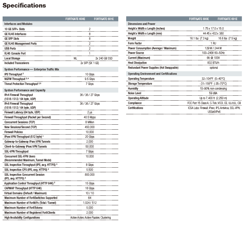 The FortiGate 600E series delivers next generation firewall capabilities for mid-sized to large enterprises,with the flexibility to be deployed at the campus or enterprise branch. Protect against cyber threats with security processor powered high performance, security efficacy and deep visibility.