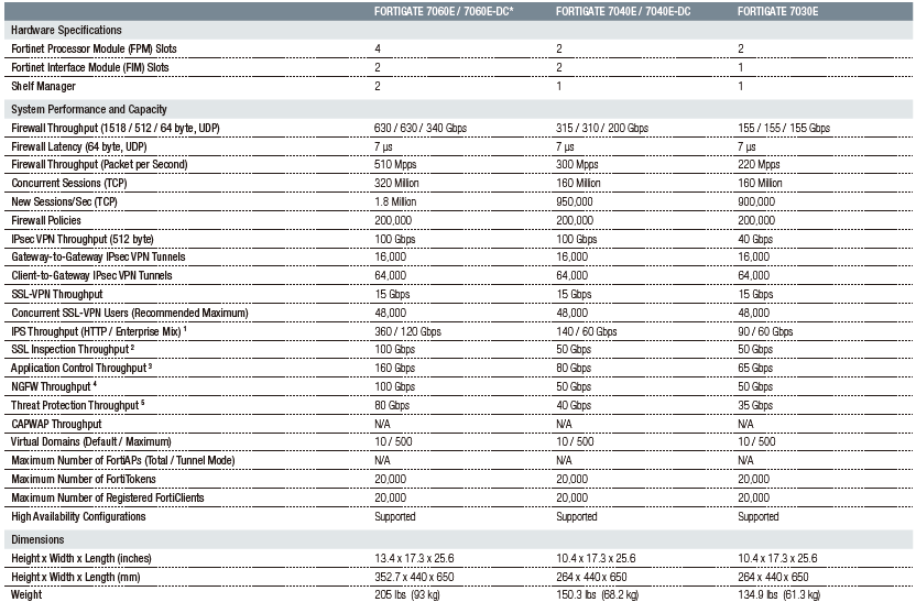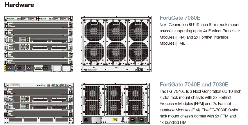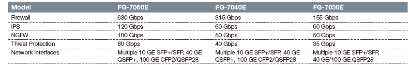 The FortiGate 7000E series delivers high performance threat protection and SSL inspection for large enterprises and service providers, with the flexibility to be deployed at the enterprise/cloud edge, in the data center core or internal segments. The multiple high-speed interfaces, high port density, superior security efficacy and high throughput of the 7000E series keeps your network connected and secure.