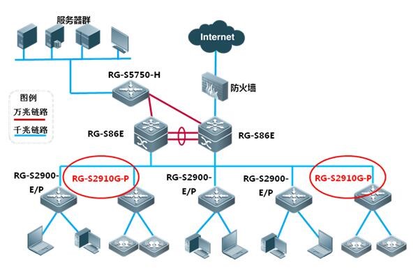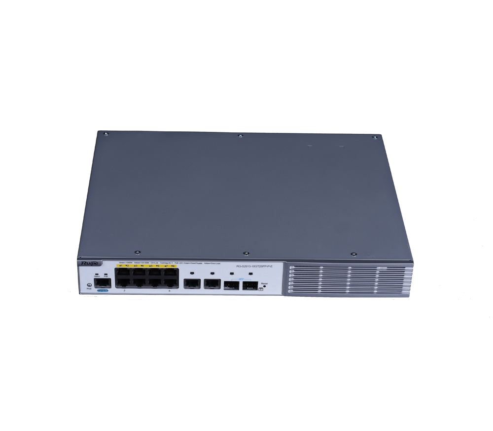 锐捷网络RG-S2910G-P系列交换机是锐捷网络面向中小网络场景推出的绿色节能低端口密度PoE交换机。该产品通过无风扇静音设计,完满解决了小型交换机部署在办公环境噪声大的问题,可广泛适用于校园网、政务网、企业网等需要为IP电话、WLAN接入点、视频IP摄像机等设备进行PoE远程供电的场景,为用户节省电源布线成本的同时,消除了为这些设备特意连接电源插座的麻烦,更好的支持了新型的服务和应用,从而为用户提供了更高的灵活性和移动性。